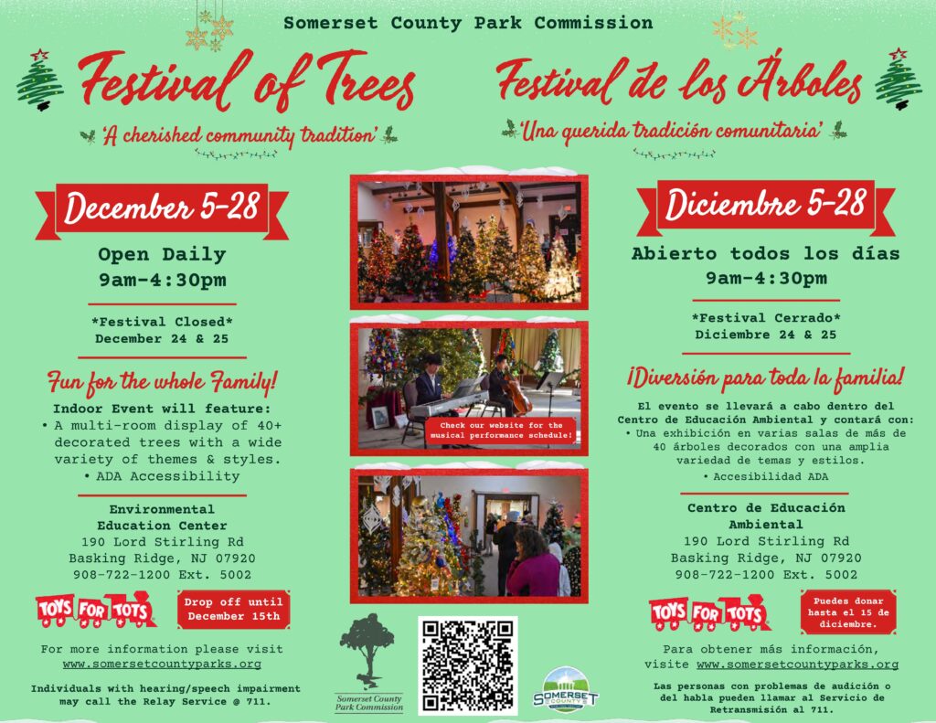 December is the time to visit the Somerset County Park Commission Environmental Education Center (EEC) to welcome winter and get into the holiday spirit! The festival is an indoor exhibit of decorated trees by various community groups and individuals alike. Enjoy holiday music and relax while viewing the beautiful trees!